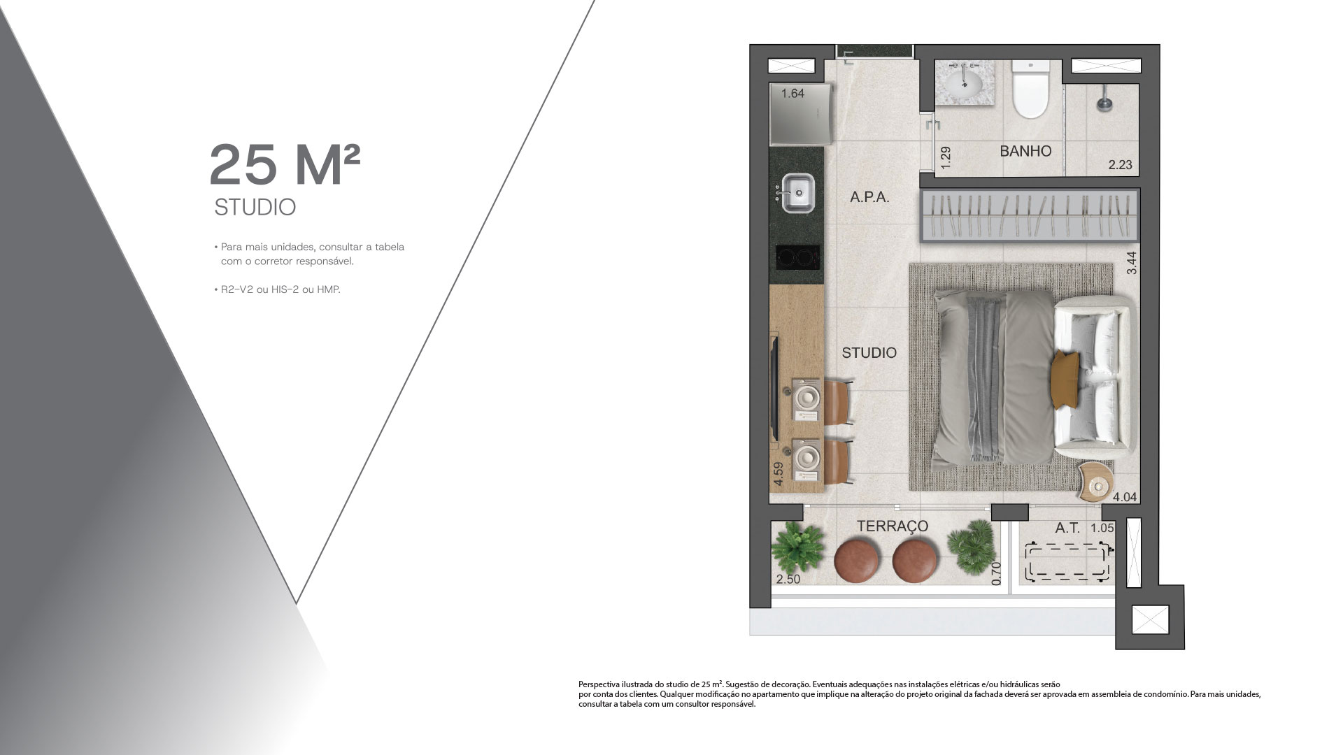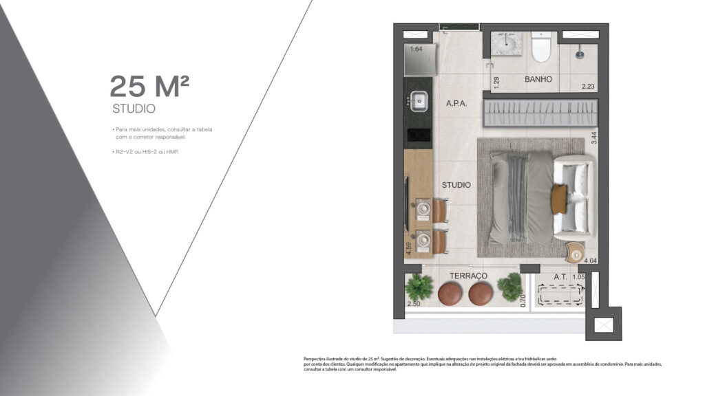 Apartamentos studios de 25 m² a 34 m², 1 dormitório de 28 m² a 32 m² com opção de vaga, e unidades de 60 m² com 2 dormitórios, com suíte e vaga de garagem, na melhor localização de Moema. A poucos passos da estação de metrô Moema e 15 minutos de caminhada até o Parque Ibirapuera, fora da rota de avião, mas próximo do Aeroporto de Congonhas, cercado por ciclovias, cafés e restaurantes.